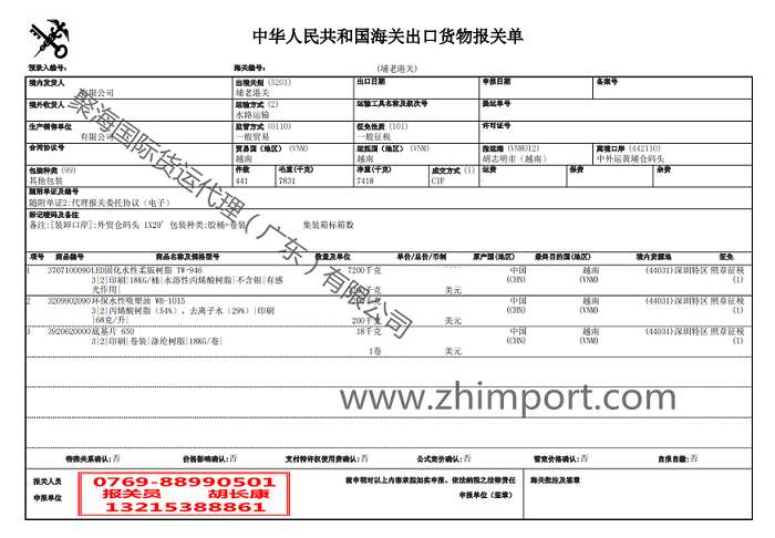 水性吸塑油报关出口越南胡志明海运代理